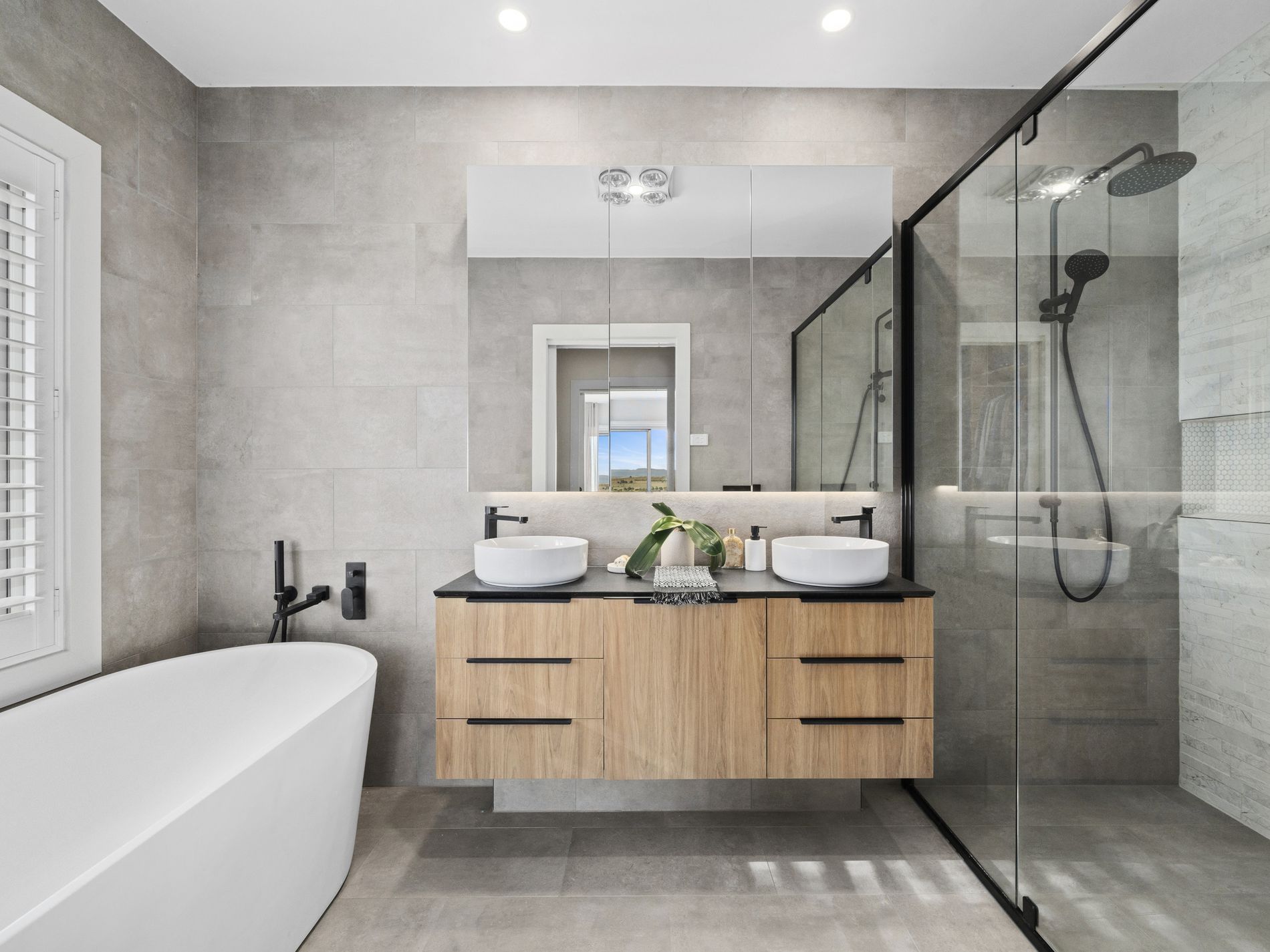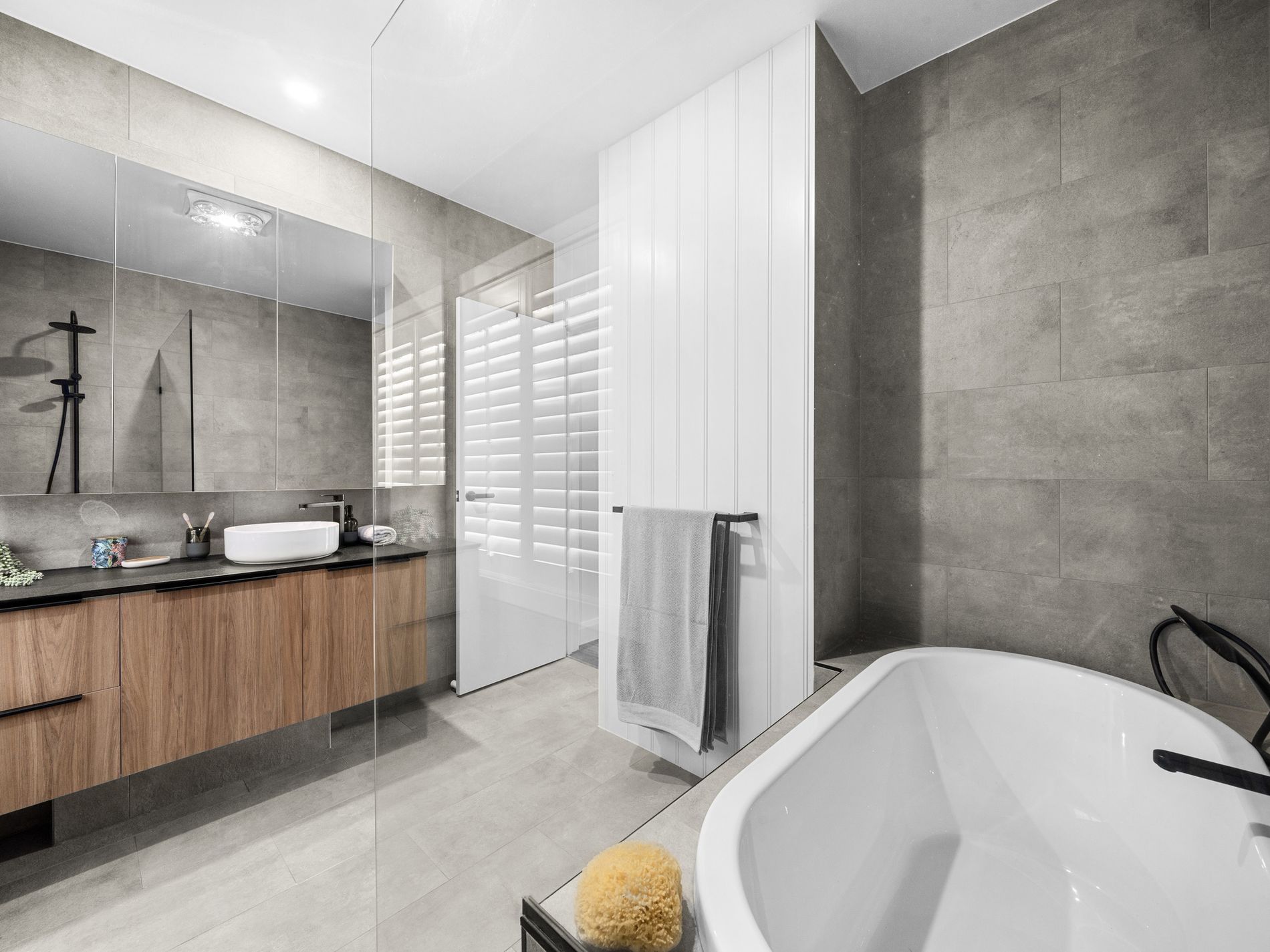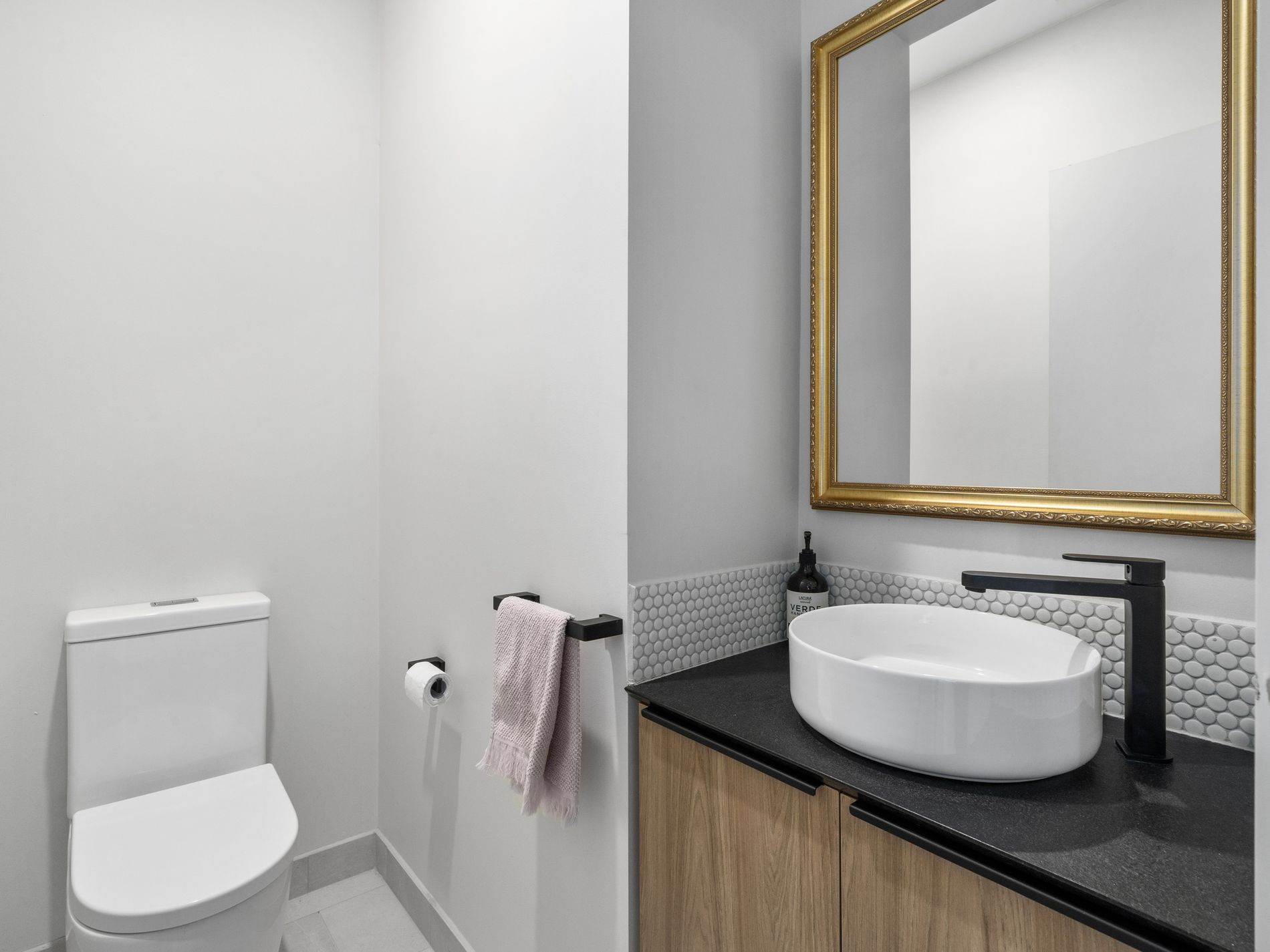 The master suite features a resort style ensuite and bespoke walk in robe. Electric blinds and heated tiles are just some of the luxury and practical inclusions. At the other end of the home is a separate children's or guest zone with another 3 generously proportioned bedrooms (or 2 and a sitting/TV room) serviced by another fabulous bathroom and powder room. The central living and entertaining zone is an absolute showstopper with soaring ceilings and huge double glazed windows and sliding doors opening onto the large alfresco area. Specially imported Zimbabwean granite features on the kitchen benchtops and fireplace plinth. Of course the joinery is bespoke and there is a butler's pantry in addition to the appliance cupboard. Even the guest's powder room is quite special!