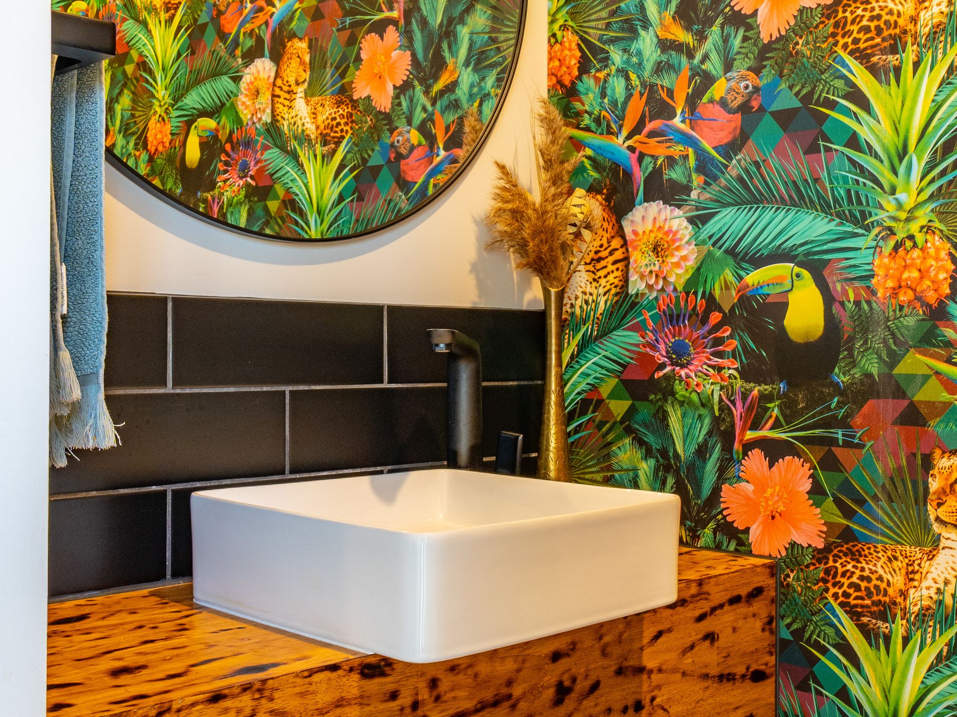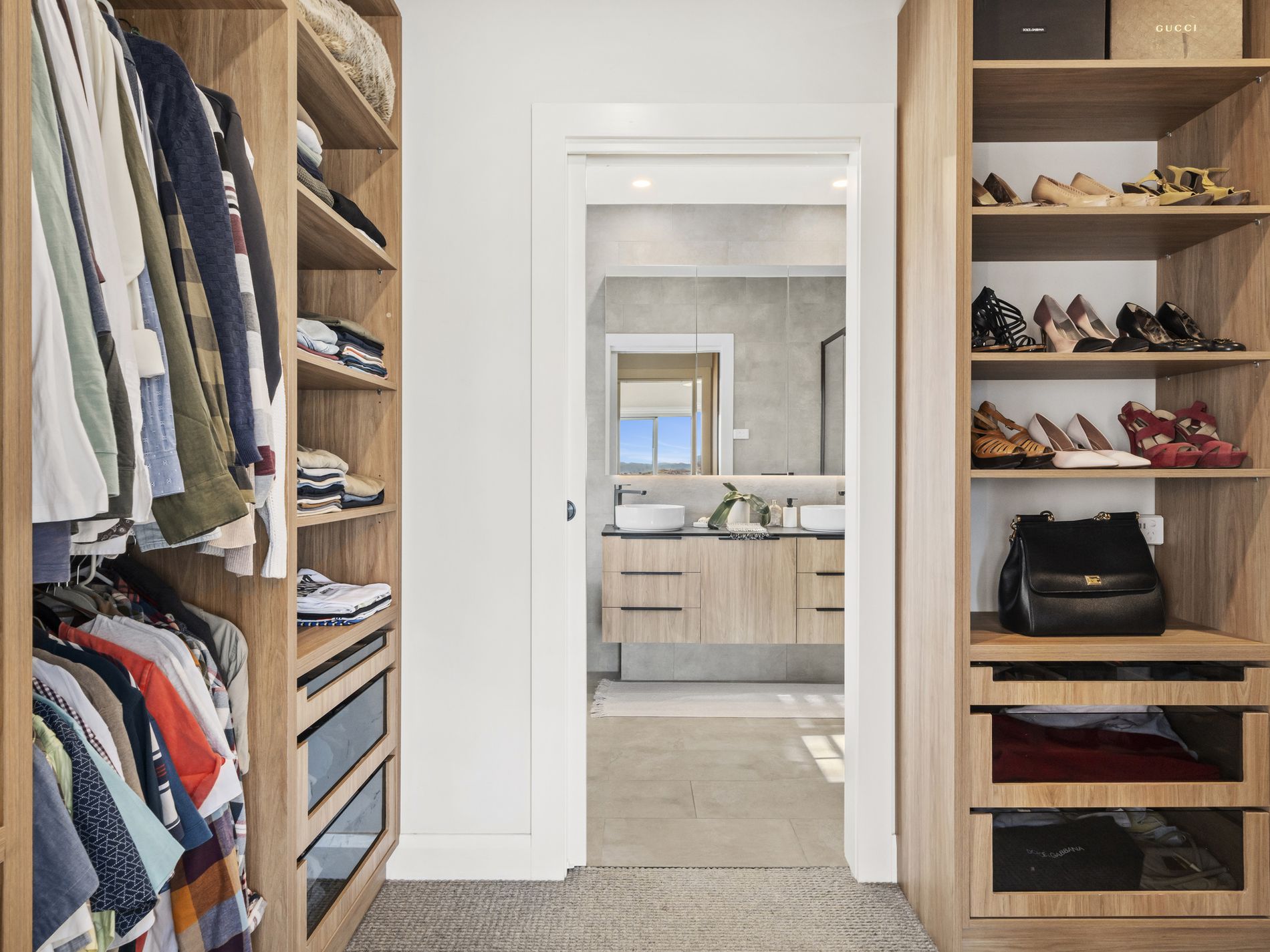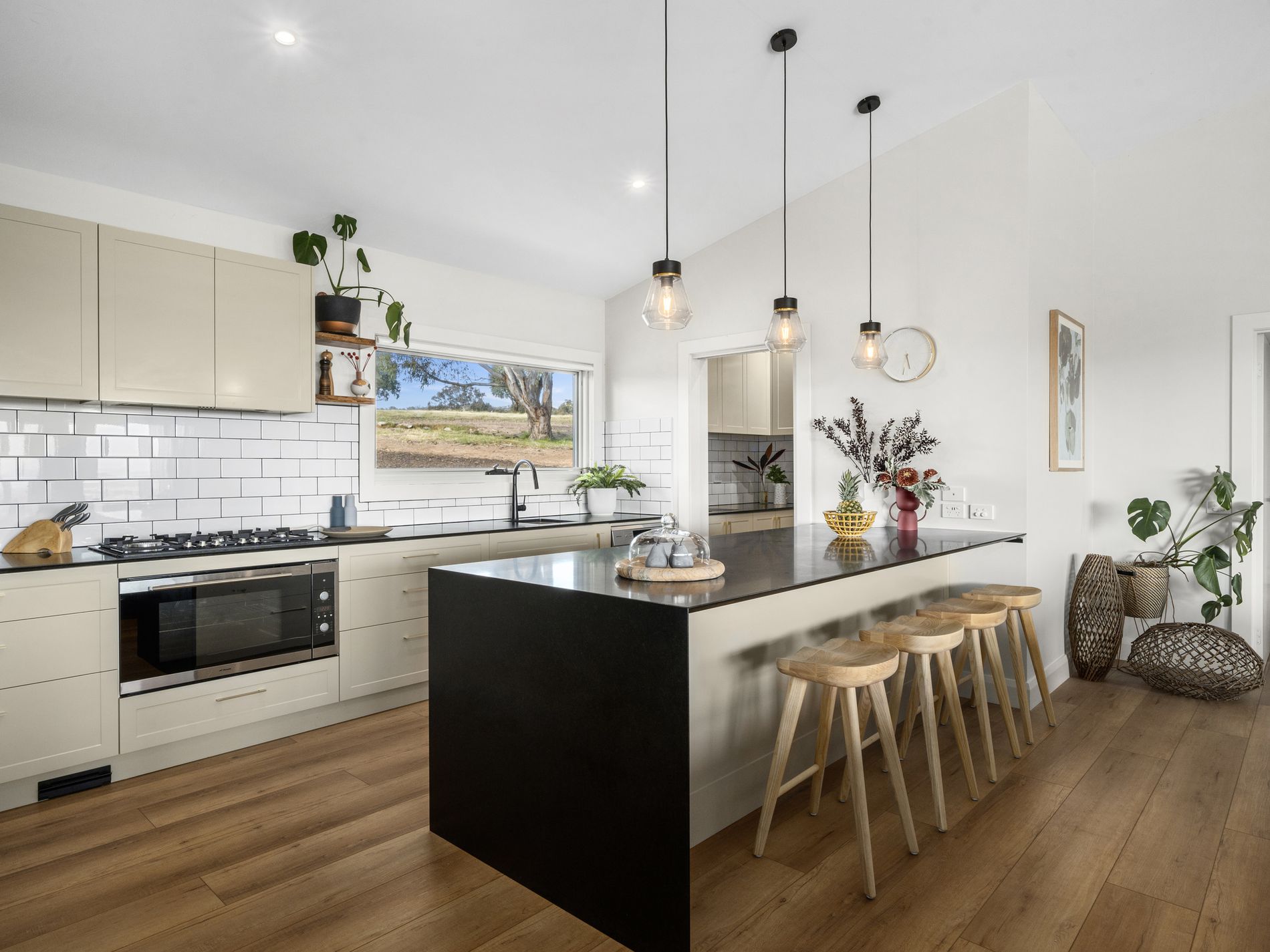 The master suite features a resort style ensuite and bespoke walk in robe. Electric blinds and heated tiles are just some of the luxury and practical inclusions. At the other end of the home is a separate children's or guest zone with another 3 generously proportioned bedrooms (or 2 and a sitting/TV room) serviced by another fabulous bathroom and powder room. The central living and entertaining zone is an absolute showstopper with soaring ceilings and huge double glazed windows and sliding doors opening onto the large alfresco area. Specially imported Zimbabwean granite features on the kitchen benchtops and fireplace plinth. Of course the joinery is bespoke and there is a butler's pantry in addition to the appliance cupboard. Even the guest's powder room is quite special!