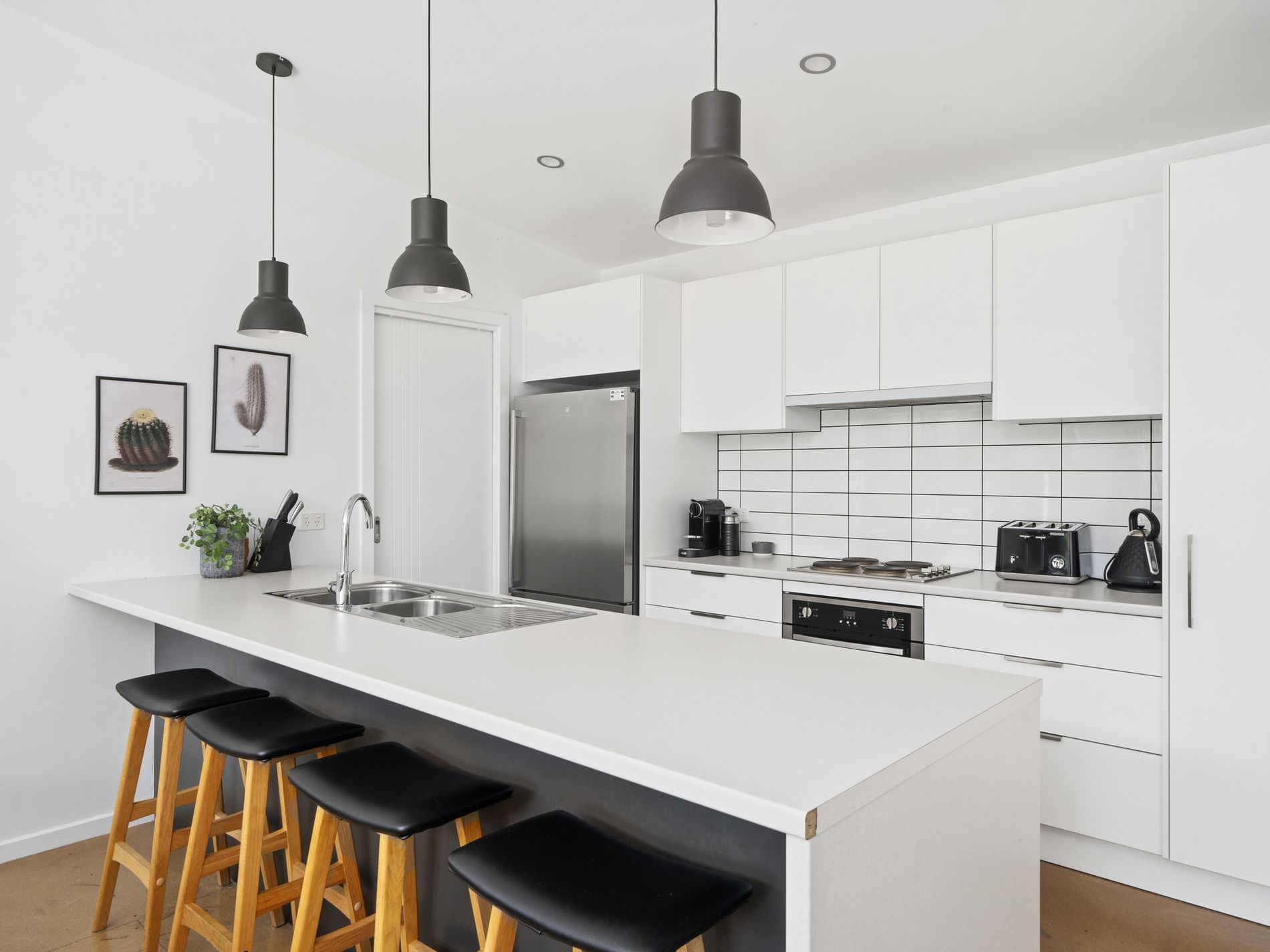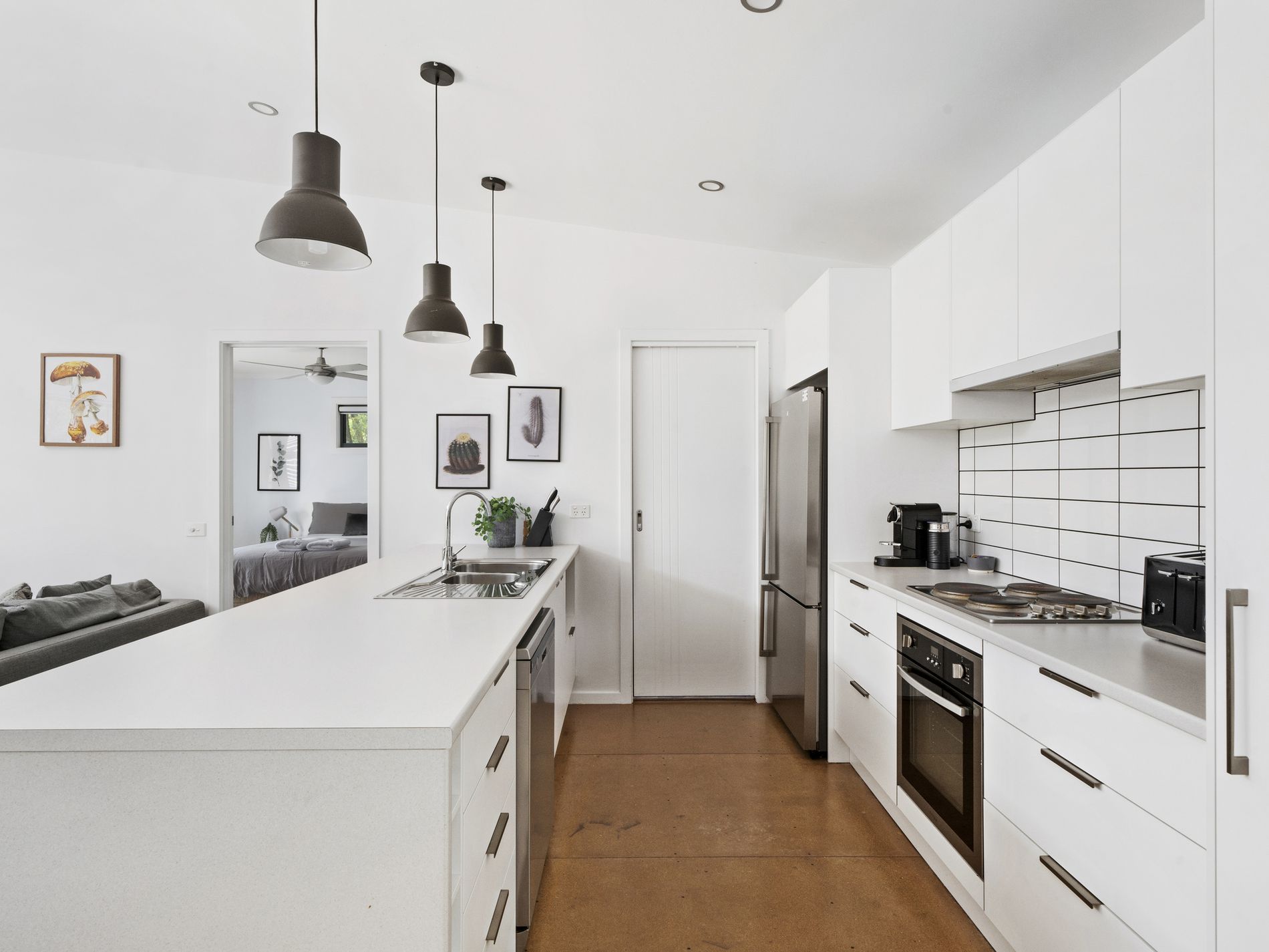 The home has been designed and built to stay naturally warm in winter and cool in summer, with the perfect solar aspect and nice big windows and ceiling fans to promote cross ventilation. North facing glass sliding doors, soaring ceilings and clerestory windows all add to the light airy feel of the big open plan living area and well-appointed kitchen.