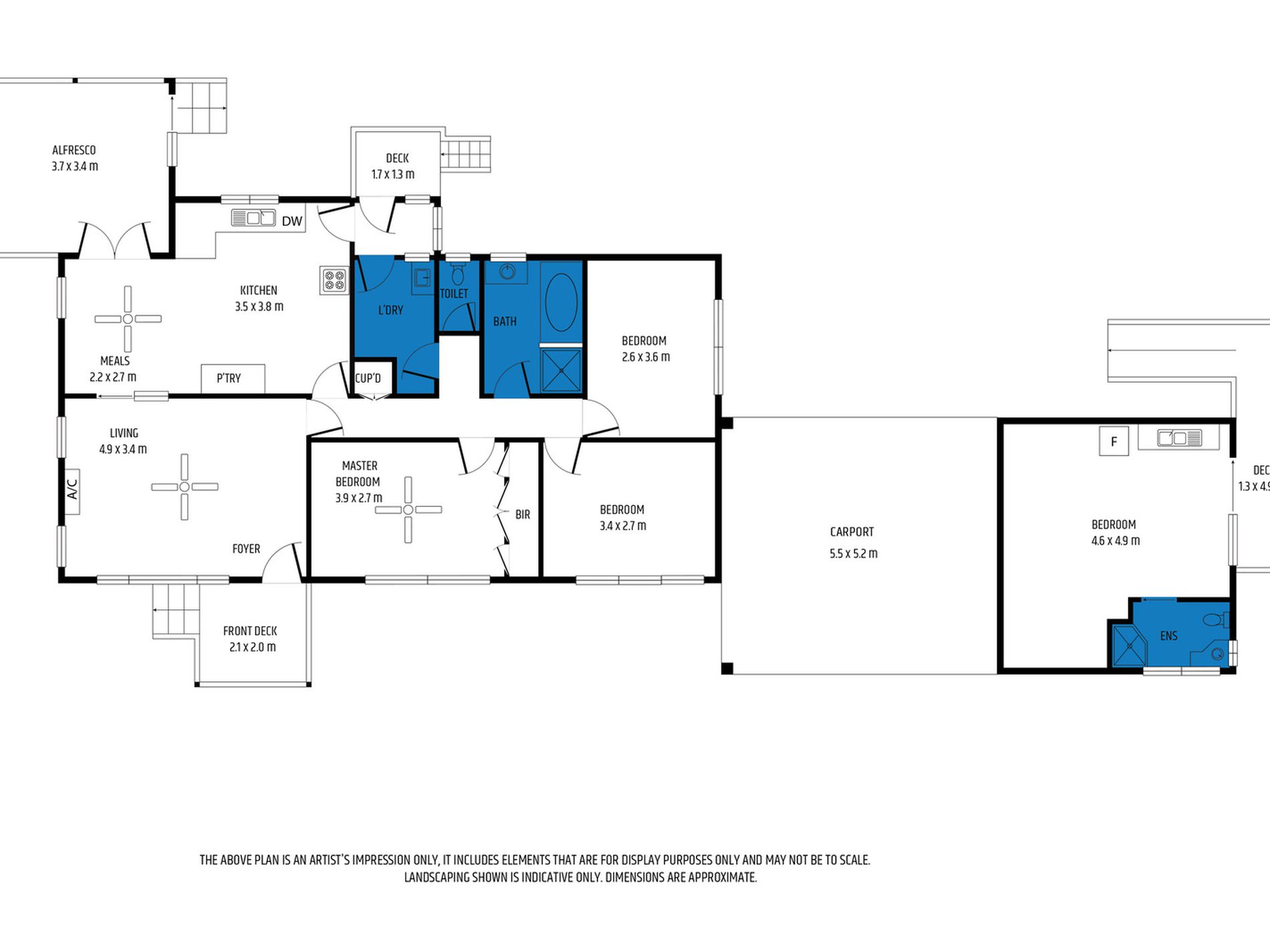 Big beautiful trees provide greenery and shade, helping keep the house cool in summer. There's also a pretty new reverse cycle air-conditioner in the main living area and several ceiling fans throughout the house.