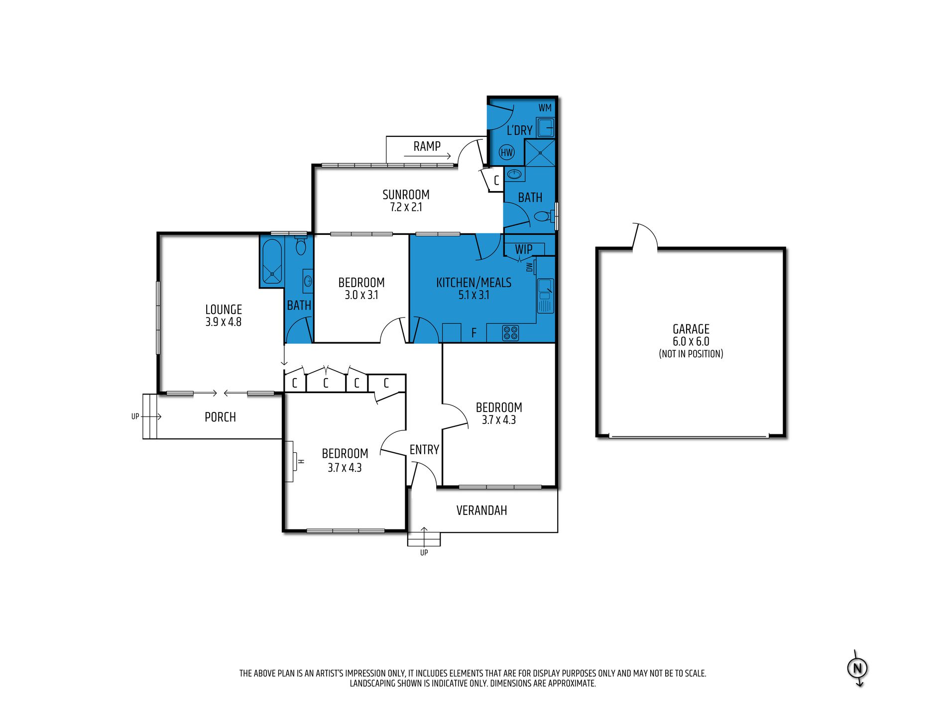 The current home has 4 main rooms, with 2 currently set up as bedrooms but potential to use either the dining or lounge as a large 3rd bedroom. There’s a dine-in kitchen plus an enclosed rear sunroom, 2 bathrooms and an external laundry. The garage/shed has room for 2 cars and a workshop or storage area.