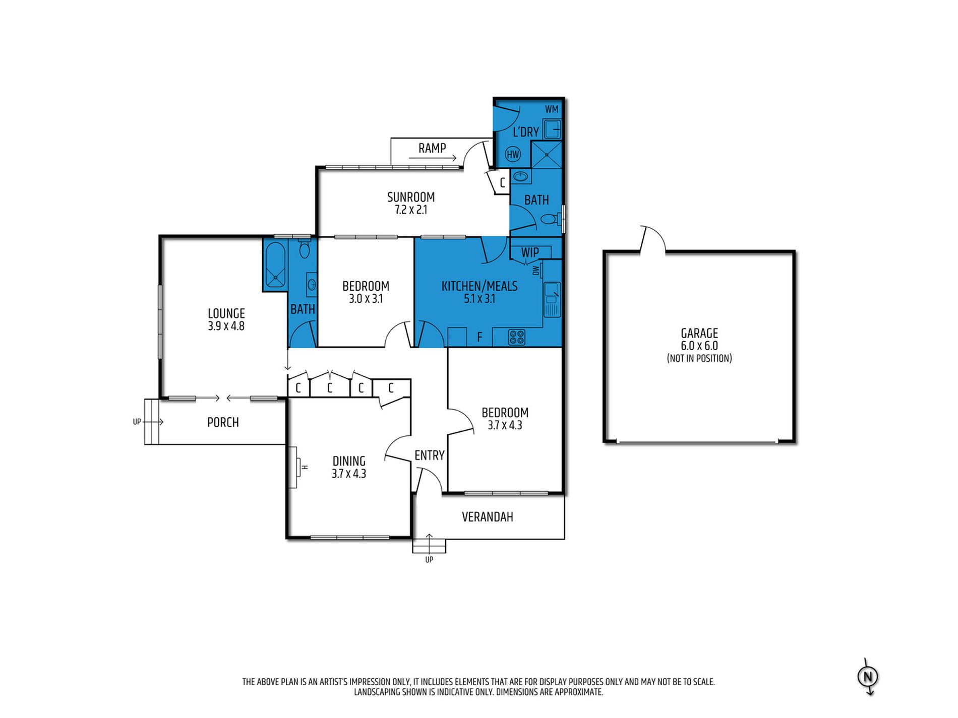 The current home has 4 main rooms, with 2 currently set up as bedrooms but potential to use either the dining or lounge as a large 3rd bedroom. There’s a dine-in kitchen plus an enclosed rear sunroom, 2 bathrooms and an external laundry. The garage/shed has room for 2 cars and a workshop or storage area.